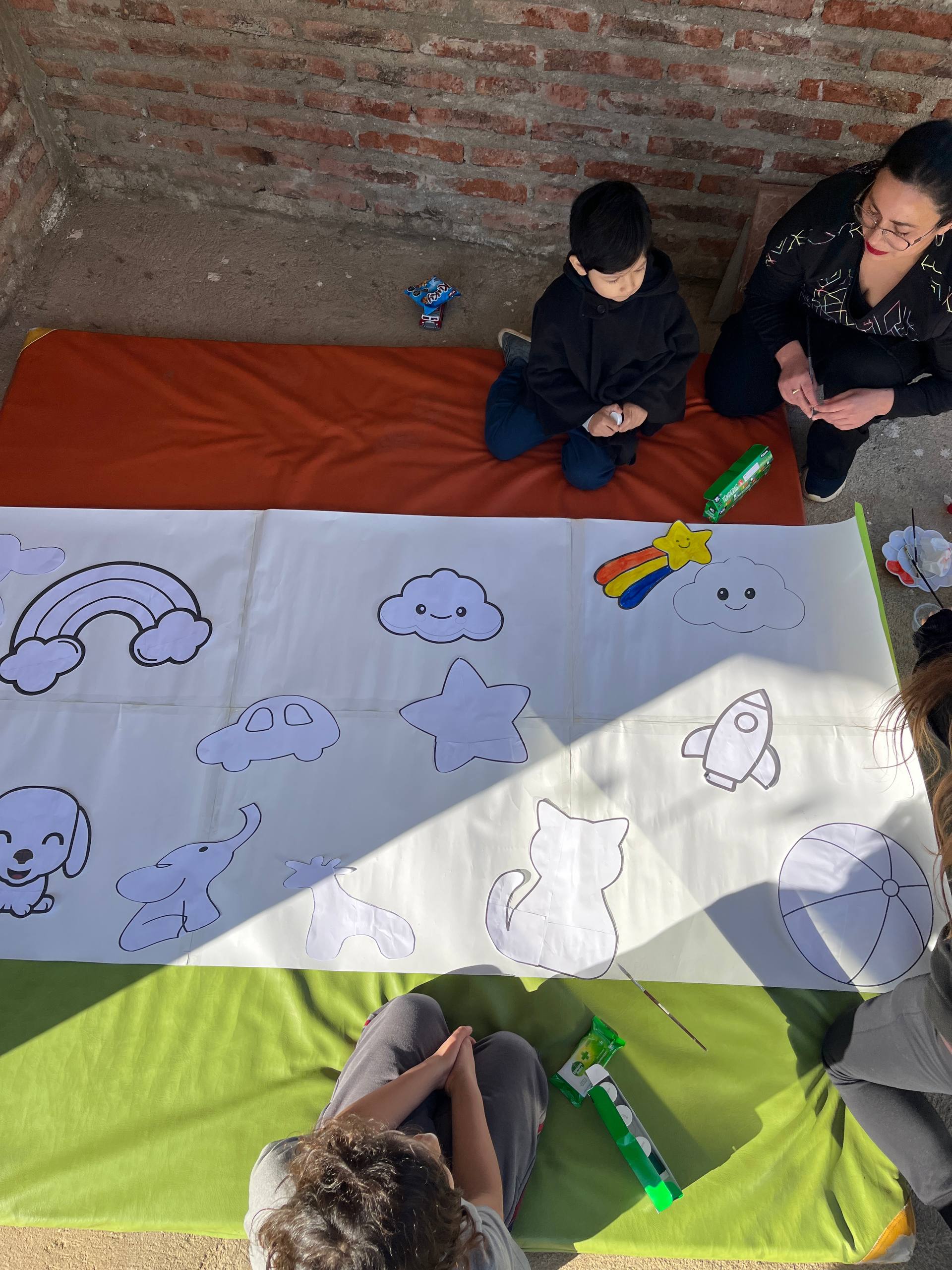 Otra de las actividades que captó gran interés fue la confección de un mural colaborativo, donde cada usuario aportó con su creatividad para crear una obra colectiva que simboliza la unión y diversidad del centro. Asimismo, se vivieron momentos entrañables con la participación de padres e hijos que asistieron vestidos de manera coordinada, reforzando los lazos familiares en un ambiente de festividad.